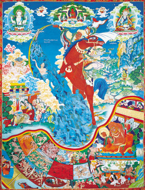 過去通過口耳相傳方式傳承的《格薩爾》,在影像時代將以生動的形式呈現在銀幕上,令人期待。唐卡《地獄大圓滿》。 資料圖片
