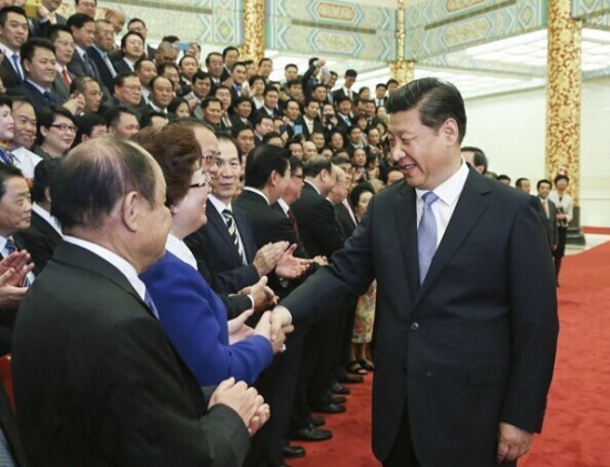 圖為:2014年6月6日,習近平在北京會見第七屆世界華僑華人社團聯誼大會代表。