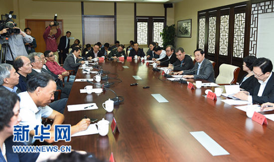 9月29日,中共中央政治局委員、中央書記處書記、中宣部部長劉奇葆在北京與第九屆茅盾文學獎獲獎作家座談。 新華社記者 謝環馳 攝