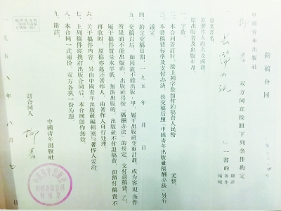 8月7日,柳青和出版社簽訂了《約稿合同》。這是一份制式合同,出版方蓋的是“中國青年出版社約稿出版合同專用章”。柳青在約稿內容的空白處填寫了“長篇小說”幾個字,并簽下了自己的名字,填寫了具體的年月日。這份合同的簽訂,標志著柳青把長篇小說《創業史》正式許給了中國青年出版社。