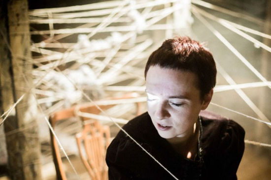 演出的第二空間才是《藏匿》真正的“發生地”。閉塞陰暗的空間里,彌漫的霧氣(塵土)阻擋了觀眾前行的視線,穿梭其中的觀眾,警惕般地彎腰前 進,他們與蛛網般密密麻麻的毛線、凌亂的舊式家具、孤獨無助的女人擦肩而過,探尋著各自的位置。此時,一切的外在聯系均被阻隔,剩下的惟有擁擠、迷茫,以 及無處遁逃后的壓抑、恐懼。時間仿佛從此停滯,而恰在此時,“故事”開始了:納粹的到來打破了黑暗的平靜,早已坐在人群中的四個女人開始瘋狂地跑動起來。 變形的肢體、急促的語氣,縱然觀眾看不清她們緊張的面孔,卻依舊可以感受到其求生的強烈欲望?;靵y中,兩個躲避的少女逃至索爾斯卡家,年邁的索爾斯卡收留 了她們,漫長的藏匿生涯由此開始。她們跟那些同樣隱藏起來的猶太婦女一樣化用假身份,把自己的頭發染成“雅利安人”的式樣;為了生存下來,還把羊毛打成制 衣用的毛線,靠他人帶到外面銷售。然而,納粹的再次出現擊碎了她們活下去的全部夢想??膳碌那瞄T聲像是死神的召喚,盡管有索爾斯卡的保護,但最終一名躲在 櫥柜里的少女還是被納粹捉進了集中營。另一位少女雖然逃過此劫,可在剩下的歲月里,她與索爾斯卡一樣,經歷著靈魂的拷問和世間的冷漠……在相同的時空內, 觀眾目睹了身邊發生的一切,他們痛心于少女藏匿時的身份喪失、揪心于索爾斯卡同納粹的一次次周旋、傷心于櫥柜中少女求救時的絕望,就是這種近在咫尺的無能 為力,將身為藏匿者一員的觀眾與“故事”緊緊地聯系在了一起。