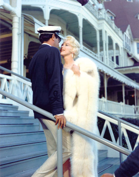 沒有人是完美的,可對甜甜這類空有美貌的、傻傻地想釣金龜婿的金發女郎,懷爾德施與的同情遠遠不如對“男伴”多。懷爾德對甜甜的刻薄,我也是這 次電影節才看到的。初見時,兩位男主角形容她是“裝了彈簧的果凍”;男女主角第一次傾心交談,她上趕著說自己“沒腦子”;最后她剛剛得知被騙,立刻追上再 度逃走的喬,理由還是“我很笨”。