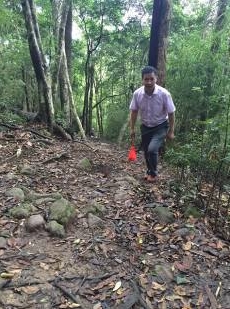 到了A20丟棍崖,此地海拔1539米,距五指山主峰1007M,祁將軍和孫玉民都在喘息了,當然也有張大嘴巴的我,但此時每個人的精神是擁抱勝利的感覺,越過了后邊樹根纏繞的險路,望著前邊一眼望不盡的崎路,我不由想起曾看過的一個資料,紅軍長征時毛澤東曾發布過一個行軍告示:我們必須準備走大路、小路、直路和彎路。走過白天是黑夜路,走過黑夜是白天路,走過天涯還有路!走上坡路、下坡路、岔路和崎路,還要準備走絕路,走完絕路,我們再趕路!……不能確定這是毛澤東筆意,但此行軍告示鼓舞人心,如號角一樣鼓舞紅軍走完二萬五千里長征,成為人類英雄史上的壯舉。
