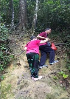 晚餐時,梅主席跟作家們談起自己爬五指山的感受,說第一次下山時被抬了下來,第二次穿著拖鞋上去了,語氣輕松,一雙“烈日灼心”的眼睛絲毫看不出登五指山的挑戰性,大家也就沒把登五指山看得過重,穿拖鞋都能登上五指山的“梅廣告”,讓文友們真的輕視五指山的險峻了,但梅主席最后強調了一句:五指山不是登而是爬。因為要保護熱帶雨淋的生態,有一段路沒有棧道,關鍵的地方架了幾處鐵梯子。