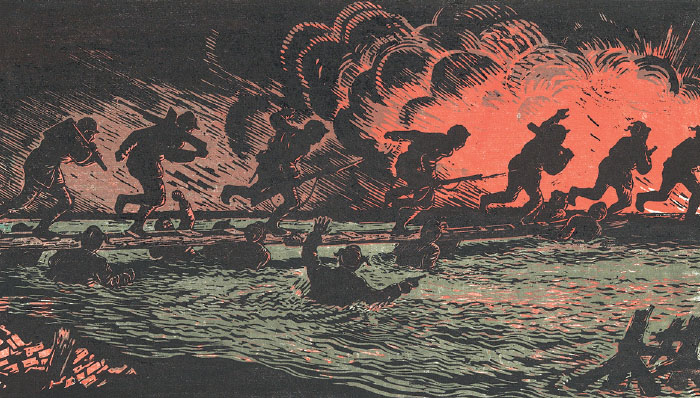 抗日戰爭結束后,古元離開延安,人生歷程和藝術道路都在經歷著改變。創作于這一時期的《焚毀舊地契》《人橋》等作品已經成為中國美術史上的經典,這源于古元對現實生活的真實感受和藝術提煉。他曾說:“風格是隨時代、環境和其他外來因素和主觀感受而變遷的?!?所以在新中國成立初期,古元不但創作了大量反映新中國社會建設的作品,如《鞍鋼之修復》等,還將關注的目光放在普通工人、農民和市民的普通生活上。在面對這個全新世界時,古元用自己的藝術捍衛著心中的和平與自由??姑涝_始后,古元和許多藝術家一起,親赴戰場第一線去慰問、采風、收集創作素材,在戰火紛飛的戰場上,他用自己的畫筆記錄了志愿軍戰士和朝鮮人民真實的戰斗生活。此次展覽展出了古元在朝鮮戰場的速寫作品,觀眾可以通過這些展品去感受戰爭的殘酷,以及普通民眾對于和平的渴求與希望。