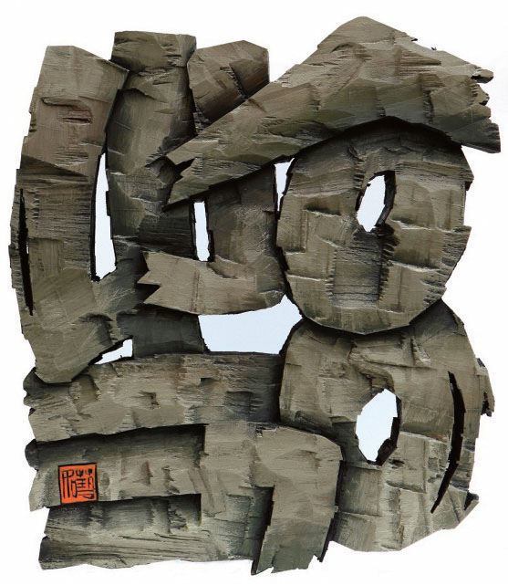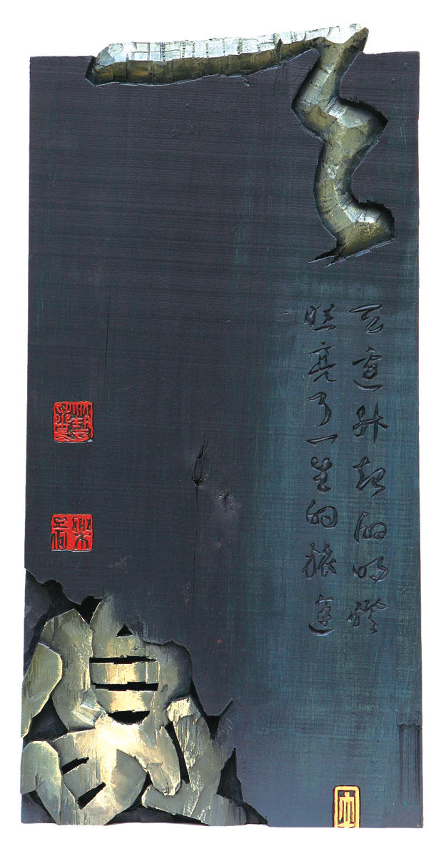 總體來看,藝如樂圖是一位成就卓著又勇于探索的藝術家。他在國內的書法藝術界獨樹一幟,畫、書、印、刻字等多種藝術形式的探索為他的成功奠定了堅實的基礎。他的書法有凝練蒼樸、金石鑄鑿的味道,刻字更是他綜合藝術素質的高度體現。他以書法為基礎,將傳統的陰刻、陽刻、透雕、浮雕等融會貫通,并結合繪畫、雕塑、裱裝、設計、裝置等藝術手法,將漢字和蒙古文字的形態在二維、三維空間中得以完美呈現,大大增強了作品的視覺擴張力和奇觀性。