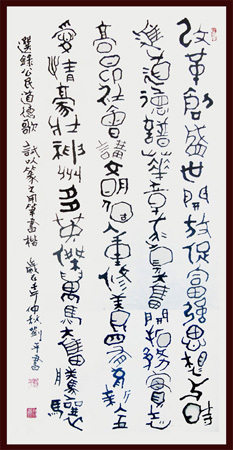 劉平,1931年11月生,江蘇省蘇州人,五歲隨父學書,臨池十年。1947年7月參加革命,1948年7月入黨,在部隊曾榮獲“解放獎章”“淮海戰役”“渡江戰役”紀念章等。1979年轉業回蘇州擔任學校(大專)黨政領導并兼課(職稱大學講師)。1992年離休后,曾在全國各類大展賽中獲各種獎勵一百多次。2000年曾代表蘇州市參加全國“夕陽紅書畫現場創作大賽”(全國文聯在杭州舉辦)獲金杯獎。2005年被江蘇省國畫院書法研究院聘為“特聘書法家”;2007年被聘為“中國名人書法家協會院士”;評為“中國書畫家協會(香港)一級美術師”;2008年聘為“世界文化藝術研究中心理事”等;并相繼被聘為“宋莊國際書畫院終身院長”“中國文化學會藝術委員會主席”,且被聘為英國皇家藝術研究院榮譽院士、客座教授等十多個榮譽職務。并榮獲“愛國愛軍優秀藝術家”“世界和平藝術家”“2001年——2010年中國百位金典藝術家”“推動中國社會進步突出貢獻人物”“感動中國文化人物”“和諧社會建設突出貢獻人物”當選為“二十一世紀全球華人最具影響力藝術家”先進事跡被載入《共和國功勛人物志》全國德藝雙馨勞動英雄等,并榮獲蘇州市“優秀老干部黨員”“四好老干部”等榮譽稱號。2014年又榮獲“國際金馬藝術獎終身成就獎”。2015年獲得中華文化突出貢獻獎、聯合國文化傳播大使、光榮入選、非物質文化遺產傳承人物。出版的作品集有個人選集《大家名家》雙人集有《當代藝神》《中印藝術大家》,合集有《書壇巨擘》《一代翹楚》《書畫藝術泰斗》《中國輝煌》《中華文化藝術巨匠》《日出東方》《文化強國》《盛世翰墨名家經典》(國禮卷)等。