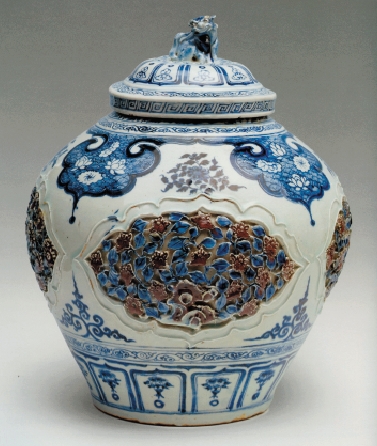 元青花 釉里紅開光鏤空花卉紋蓋罐 高41.2厘米 河北文物保護中心藏