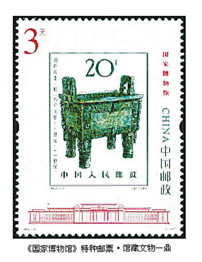 1964年8月25日,我國發行一套《殷代銅器》特種郵票,其中第八枚“司母戊鼎”;2012年7月8日,我國發行一套《國家博物館》特種郵票,其中第二枚“館藏文物——鼎”,圖案以“票中票”的形式再現了《殷代銅器》特種郵票中第八枚“司母戊鼎”。