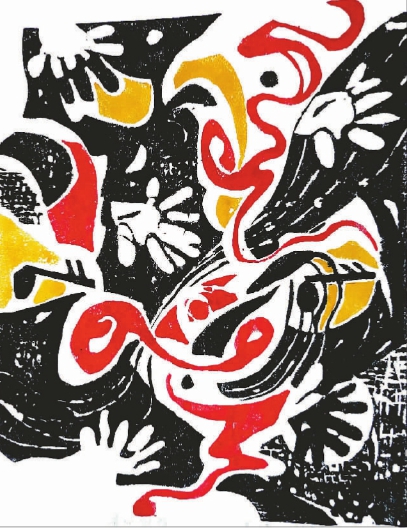 春的激蕩(套色木刻版畫) 彥涵