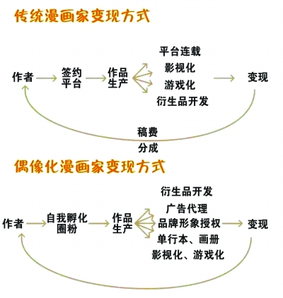 在“粉絲經濟”大熱的當下,這些網紅漫畫家對應著數十萬、幾百萬甚至上千萬人的消費號召力,他們也許不如踏實講故事的傳統漫畫家們“根正苗紅”,但其存在應是個體漫畫作者在和平臺合作與分成之外的一種有效突圍嘗試。