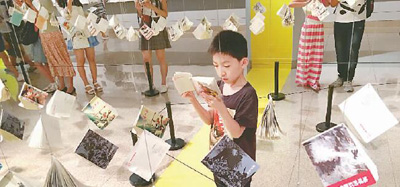小讀者在“故事繪——中國美術館藏連環畫原作精品展”上閱讀。本報記者 劉彬攝/光明圖片