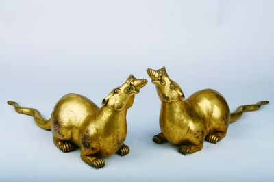 說起動物的形象,人們最熟悉的莫過于十二生肖。此次展出的一對《清乾隆銅鎏金吐寶神鼬》顛覆了大家長久以來對老鼠的印象。吐寶鼬不是一般的老鼠,是一種看管財寶的神獸,它口吐摩尼寶珠,代表著無限的財富。此對吐寶鼬由銅鑄而成,經鏨刻修飾,展現出了精致的五官,體態豐滿渾厚,通體鎏金,工藝復雜。兩只吐寶鼬一雌一雄,萌態十足,想必是人人都想擁有的“招財鼠”。