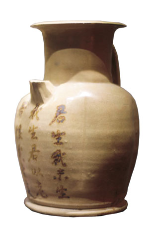 青釉褐彩“君生我未生”詩詞壺