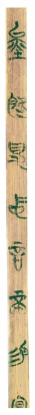 在喧囂的都市中,遠離燈紅酒綠的喧鬧,遠離低級趣味的娛樂,忘掉世俗的紛擾、物質的誘惑,在一個角落里,靜靜面對著一枚枚古人留下的簡牘,體味著其中深奧的內容,欣賞著那兩千多年前的書手留下的墨跡,仿佛穿越了時空。一旦有了新的領悟,掂一支狼毫,研一池新墨,古老竹簡上的文字,在潔白的宣紙上仿佛復活了,既保留了古意盎然,又增添了幾分新趣。這種好似與古人對話的感覺,是難以與外人道來的一份快樂。