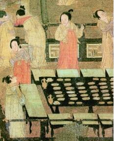 在飲食上,也很有講究。在七夕節前,婦人們便要以紅熬雞以及其他的時新果品,互相饋贈,取吉慶之意。負責果品進貢的蜜煎局還會在市場上售賣水蜜木瓜。孟元老的《東京夢華錄》中還記載售賣七夕物品的乞巧市的熱鬧場景,“自七月初一為始,車馬喧闐,七夕前兩三日,車馬再次壅遏,不復得出,至夜方散?!边@歡愉熱鬧的節日氣氛不難讓人想見宋代市民城市生活的美好。