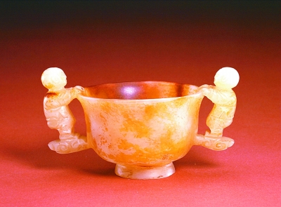 白玉雙嬰耳杯(故宮博物院藏)資料圖片