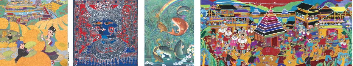 三江侗族農民畫來源并植根于侗族藝術的沃土,來源于侗族人民豐富多彩的生活,他們在勞作之余,放下鋤頭,拿起畫筆,把古老的侗族民間藝術融入現代繪畫中,以畫傳情、以畫傳神,表達了畫家們對自然、對家鄉、對生活的美好向往和追求,其在民族人類學、民族審美學等方面也具有極高的研究價值。 (民 文)