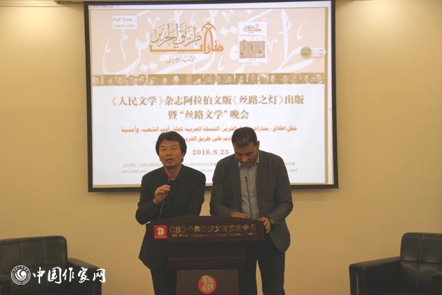 據介紹,阿拉伯文版《絲路之燈》是《人民文學》的第9種外文版,每一期有不同主題,系統地向阿拉伯世界介紹中國當代作家作品。吉狄馬加談到,阿拉伯文版《絲路之燈》的出版,為中阿交流打開了新的窗口和渠道。阿拉伯的傳統文化非常深厚,阿拉伯的現當代文學也非常繁榮。中國和阿拉伯國家應該在文化上開展更深層次的交流,既要把中國作家的優秀作品翻譯成阿拉伯文,又要及時地把阿拉伯作家的作品翻譯成中文。加尼姆·希卜里在發言中回顧了中國文學在阿拉伯世界的傳播過程。他認為,在“一帶一路”戰略的框架下,中國文學和思想類作品的翻譯和出版,對于積極構建中阿兩國人民之間交流的橋梁、夯實人文交流的基礎,具有重要意義。