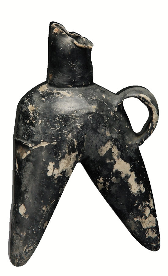 1986年浙江省杭州市余杭區瓶窯鎮反山遺址M15出土 玉冠狀器為良渚文化時期帶有禮儀性質的裝飾玉器。該器物平面整體呈寶蓋頭結構,如同良渚文化晚期的臺階形玉片的結構,冠頂中部切割呈寶蓋頭結構,下端扁榫上有三個等距的對鉆小孔。正反兩面以透雕和陰線刻劃相結合的技法,對稱雕琢肢體俱全的神人圖像,填刻光芒線的寶蓋頭冠帽,倒梯形臉部,單圈眼,一側刻劃眼角,刻劃有牙齒的寬嘴。神人上臂兩側各“持”有鳥形象,此部位紋飾或可視為獸面紋的雙眼,神人胸腹部位為一般常見的圓拱形結構。兩面的紋飾除個別刻劃線條的結構有區別外,余均一致。