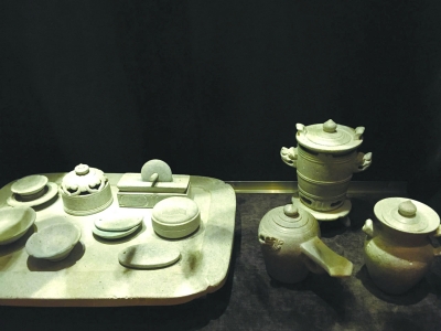 唐代孔雀石茶碾、煮茶器、茶壺、茶杯
