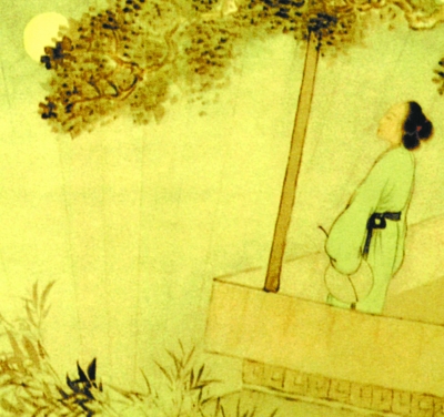 五代時期周文矩所繪《仙女乘鸞圖》里的中秋大月亮(現藏于故宮博物院)