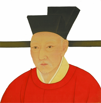 帝王品位中的第二個主角,是以宋高宗為首的南宋諸帝。展品中有三幅半身人像,分別是宋高宗像(主圖)、高宗吳皇后像和孝宗皇后像,人物神態清晰,栩栩如生。我一看到宋高宗,當時就驚呆了,只見一個老者,須發皆白,穿紅袍,戴烏紗,那眼眉樣貌,分明就是演員倪大紅。人和人之間長得像,并不是什么新鮮事,但是一個古代皇帝和今天的演員長的幾乎一模一樣,這還真是罕見。據我所知,倪大紅演過很多古裝角色,也演過皇帝,但是似乎沒有演過宋高宗,這還真是個可惜的事情。