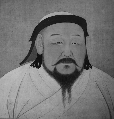 這次來的展品,是忽必烈的半身肖像(上圖),也是一件真正的國寶文物。臺北故宮收藏了一套元代帝王的半身相冊,共有八幅,從元太祖成吉思汗到元寧宗,元世祖像是其中的一幅。元世祖像在歷史書上很常見,但是真像依然沖擊力十足,不光容顏逼真,而且尺寸很大,至少是等身的。在古代,除非是專門制作的帝王肖像,否則很少有人像能達到這種水平。元世祖的容貌是很有典型的蒙古人特征,他面貌渾圓飽滿,身穿白袍,頭戴皮帽。古代蒙古人不論身份高低,男子皆留“婆焦”發型,就是剃除頂部頭發,只留前額和耳側,然后在耳后結發辮為環,歷史上元朝的帝王皆留此發型。由于沒有明確的題記,忽必烈畫像的作者已不可考,這幅畫像在元代時作為先帝御容,被供奉于大都的皇家寺廟大圣壽萬安寺,明代之后進入宮廷保存,清朝時期作為歷代帝王像之一,存于故宮南薰殿,后被運至臺灣。