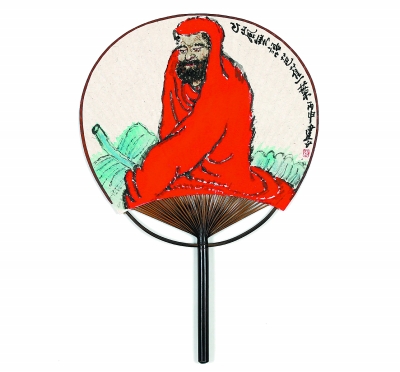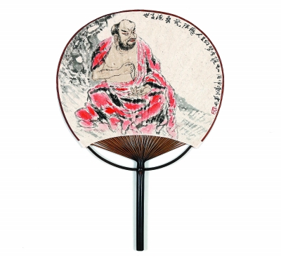 “手中白團扇,凈如秋團月”。中秋剛過,依舊炎熱,手執團扇,細細賞玩。扇面是梁建平的羅漢作品,淺絳的紙色,帶著絲絲的秋涼。沒骨的水墨,暈開散淡的禪意。扇面上的羅漢,或坐、或站、或沉思靜穆、或拈指微笑……有著乾坤機杼盡在平素的了然。
