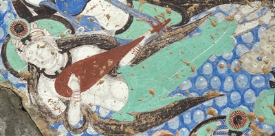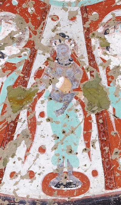 克孜爾石窟第一三五窟窟頂壁畫中彈奏羯鼓的伎樂天人