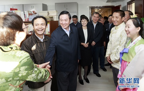 中共中央政治局委員、中央書記處書記、中宣部部長劉奇葆到作家出版集團調研文學期刊發展情況。 新華社記者丁海濤攝
