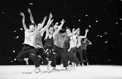 2008年之后,田戈兵進入了一個新的轉折。以前他作品中的癲狂拼貼、繁雜道具消失了,代之以最低限度的裝備。因陋就簡的簡潔更為神秘。比如2010年的作品《朗誦》,一群男演員以各種身體姿勢朗讀著各種公共文本,直至進入酣暢淋漓的自由境界。歷史的朗讀姿態被提示,被瓦解,觀眾在前所未有的上下文中面對現實。演出的最后,舞臺上大雨滂沱,演員在慢動作的微笑里邁著正步,在汗水中徒勞地獲取朗誦的高潮,之后轟然倒地。那一年在草場地“生活舞蹈工作室”的兩場演出震驚了所有人。這部作品當時只是作為藝術節的觀摩作品,沒有在國內的任何劇場正式上演,但并不妨礙其生命力。它可以被修改、由不同的人重新演繹,甚至可能根據不同的演出場地進行因地制宜的改變。而不是像電影、電視劇這樣的一次性高成本的制作,放映之后就無法再進行調整與再創作。2013年,受到荷蘭戲劇節的邀請,《朗誦》重新登上舞臺,在荷蘭的幾大城市以及德國慕尼黑室內劇院巡演,引起轟動。