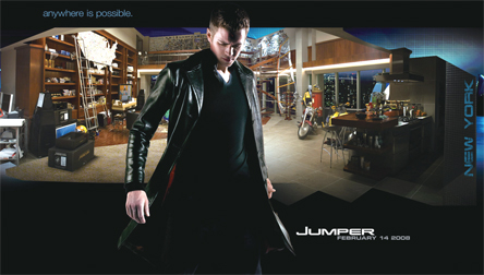 也許是因為現代交通工具的極度發達以及基本上被證實了的時間流淌的單向性,讓人感覺空間穿越實在是過于幼稚而時間穿越卻又絕無可能,因而有關后者的幻想與描述才大行其道。然而,歷史上有關空間穿越的科幻題材與時間穿越的題材同樣之多,甚至可以說更多。這里所要介紹的《心靈傳輸者》(Jumper)就是一部有關空間穿越的科幻影片。