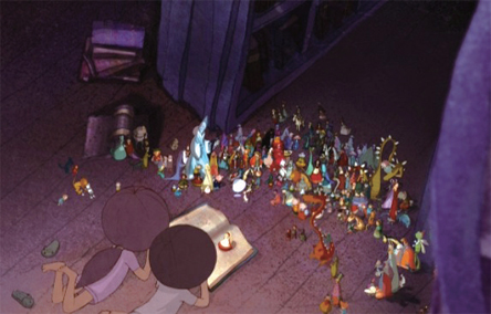 姨媽是童話故事的守護者,這間小屋里的故事書都是首版印刷。童話人物一個一個從書中走出來:白雪公主、彼得潘、愛麗絲……他們認定,克里蒂就是姨媽的接班人,是童話的守護者??死锏僦恍柙谡鐏砼R前,念出“編出來的不一定不是真的”這個守護童話的咒語,故事就會代代相傳地存在下去。否則,故事里的角色會被人遺忘,故事也將不復存在。