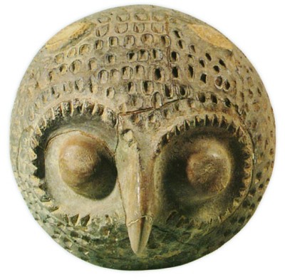 從遠古時期開始,直到商代,鴟鸮都被視為神鳥。北京大學賽克勒博物館就藏有一尊新石器時代的半球形陶鸮,原始時期此類圓雕通常都是祭祀對象或神祇;殷商時期,中原地區出土了大量以鴟鸮為表現對象的擬形青銅器、玉器,有些學者甚至提出籀文體“商”字(商代的國號)也是鴟鸮面部的正面寫照,可見鴟鸮所扮演的重要角色。對此,學者們提出至少有三個理由可以進行解釋:其一,鴟鸮是一種猛禽,在軍事領域被視為吉祥物;其二,鴟鸮活動于夜間,是為夜神或夢神;其三,鴟鸮是祖先神,中國社會科學院考古研究所研究員何努進一步指出它可能還是商代的皇室圖騰。但這樣一個重要的信仰符號,主宰生死的至上神,在周代以后,迅速地從現實生活中隱匿,這與商的征服者周不無關系。朝代更迭使得鴟鸮失寵,但在墓葬這種地下語境中,它的傳說還在繼續。