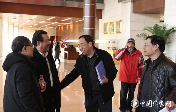 11月28日,中國作協第九次全國代表大會與會代表在報到時交談。