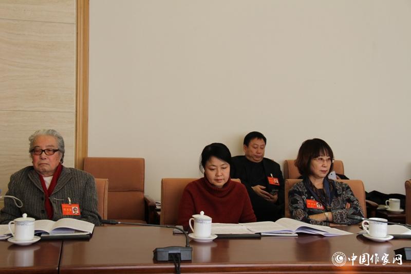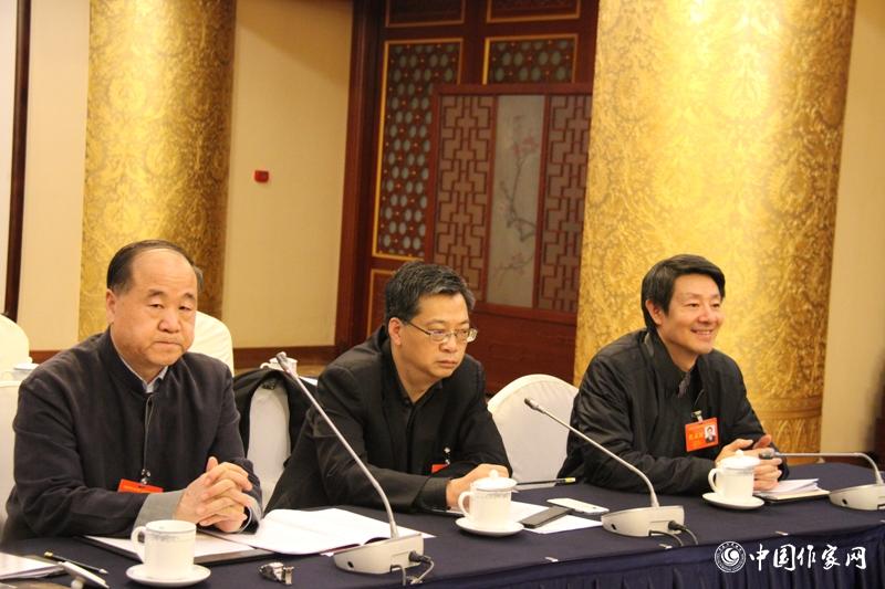 12月1日下午,中央國家機關代表團分組討論,莫言等作家參加。