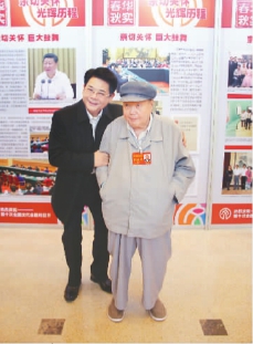 代表與美術家劉文西在展覽現場合影 中國藝術報記者 金濤 攝