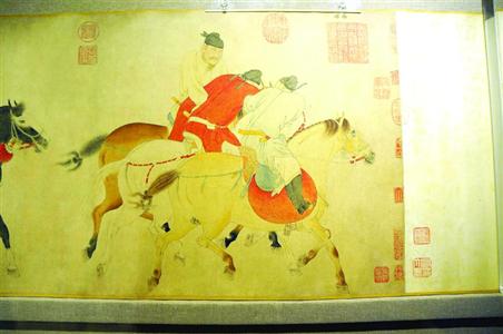 《五王醉歸圖卷》創作于元代,但用的是宋代紙本,長達2.12米,刻畫了唐玄宗五兄弟在一起騎馬游玩的場景。