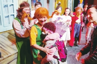《皮皮·長襪子》演出后,唐妍與白血病女孩歡歡擁抱 中國兒童藝術劇院提供