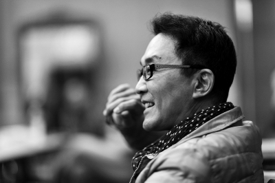 吳剛天生卷發,和幾年前相比,帶著幾分疲態,清瘦許多,和他參加影視圈兒活動時的前衛時尚不同,眼前的他,更像是回歸了本色,鼻梁上戴一副金絲眼鏡,流露出幾分學者氣質。
