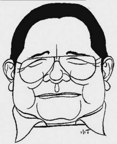 這部“肖像集”中的大多數圖,由于簡潔生動,已在報刊上多處引用,所以很多讀者都曾見到。不過其中與畫相配“寫”的內容,人們也許了解略少。譬如曾任三聯書店老總的范用對自己的漫畫肖像說:“我很丑,也不溫柔。一本正經,鬼都不相信。謹防上當,不要跟著感覺走。十足糊涂蟲,左右拎勿清。曾經深愛過,曾經無奈過。誰能告訴我,什么是什么?!边@其中的滋味,人過中年也許都不難體會;著名漫畫家華君武面對自己的肖像漫畫自述:“我屬兔,1915年生,大概在1992年,請人刻了一塊閑章‘大愚若智’,也用在某些漫畫上,實際上也是對我幾十年工作的總結?!碧热羯陨苑词?,“大愚若智”不是我們生存中常見的有趣人生現象嗎?