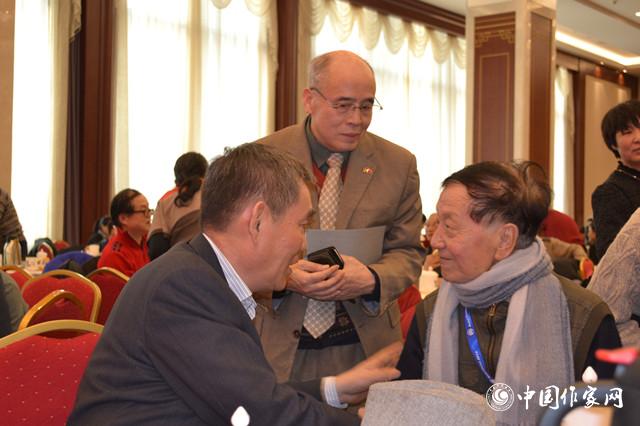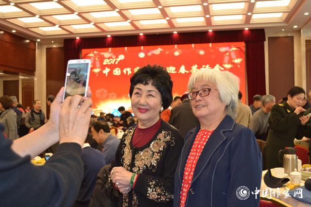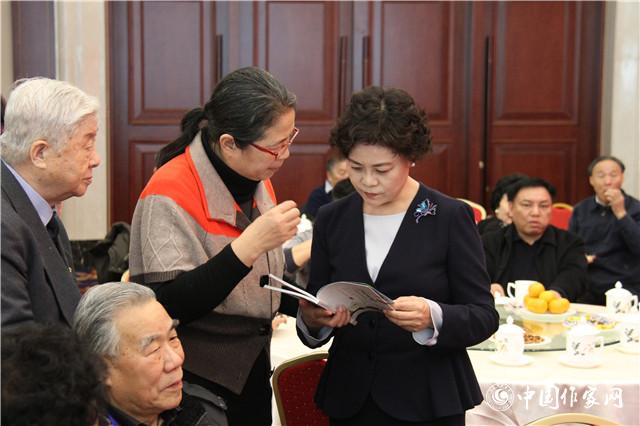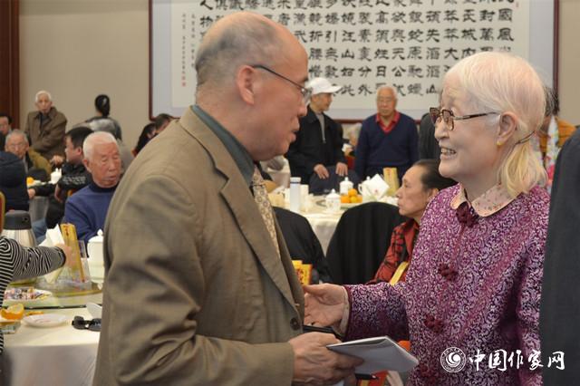 茶話會上,中國作協黨組書記處同志來到老作家、老同志中間,和新老朋友一一握手,暢敘情誼,共談文學,他們所到之處,不時傳來陣陣歡聲笑語。有的老作家拉著鐵凝、錢小芊談文學、說友情,也給中國作協新一年工作提出自己的建議;有的則拿出自己剛出版的作品,贈送給現場的親朋好友;還有的三五好友相聚,紛紛取出手機拍照,記錄下這美好難忘的一刻……