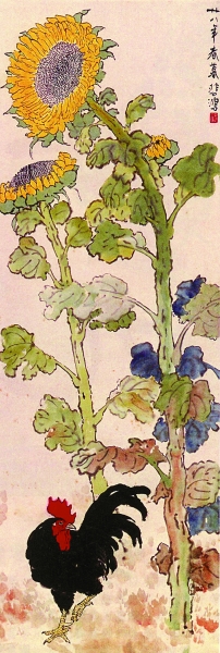 到了近代,海派畫家任頤等人繪制了不少雞畫。這些作品造型生動,設色淡雅,基本還是延續明代以來文人畫雞的樣式,但改水墨為彩色,在大大增強了表現力的同時,也損耗了文人繪畫的意趣。同時,他們對于“德禽”意味的表現也不再重視,注重追求畫面效果。