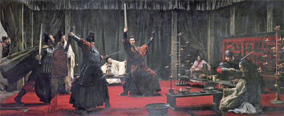 史詩無疑是對一個國家、一個民族在歷史發展的重大轉折與艱難蛻變中出現的歷史事件和民族英雄的書寫與歌頌,也是以詩的情懷對于歷史的宏大敘事與藝術再構。通過藝術創作所記錄所傳誦的這些事件與人物,由此而獲得了一種穿越歷史限度的永恒性,并成為激發民族斗志、鑄造民族靈魂的一種文化象征。史詩無疑也是一個偉大時代民族精神的濃縮,一個偉大民族在一段歷史巨變的急流中啟航與遠行的藝術見證。這或許也闡釋了在這樣一個風云際會的大變革時代,為何以造型藝術的方式來再現中華文明歷史的美術創作工程呼之即出。當它們以凝重的筆調勾勒出泱泱大國五千年文明演進的壯闊圖景時,這些皇皇巨制既是對中國藝術史缺失古代視覺藝術史詩的彌補,也是我們這個時代對中華史詩的視覺書寫與民族精神的形象塑造。