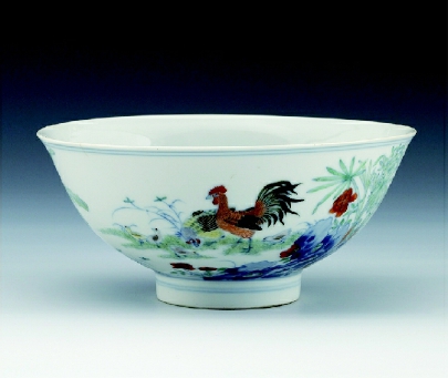 清雍正景德鎮窯斗彩芭蕉群雞紋碗