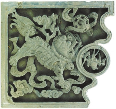 天津博物館藏清代刻磚《獅子滾繡球》
