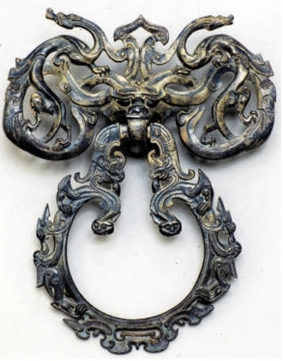 河北博物院藏西漢《鏤雕龍鳳紋銀鋪首》