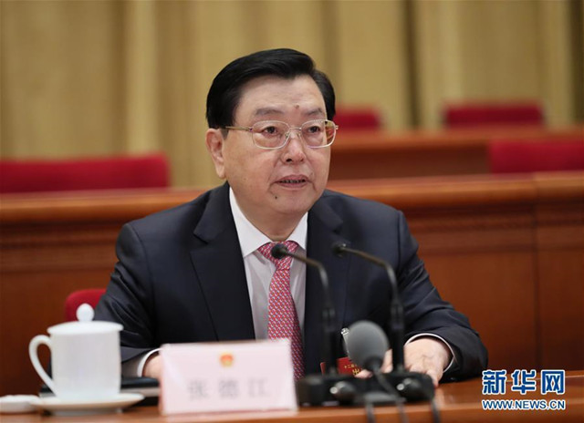 張德江指出,十二屆全國人大五次會議的指導思想是:高舉中國特色社會主義偉大旗幟,全面貫徹黨的十八大和十八屆三中、四中、五中、六中全會精神以及黨中央一系列重要部署,以鄧小平理論、“三個代表”重要思想、科學發展觀為指導,深入貫徹習近平總書記系列重要講話精神和治國理政新理念新思想新戰略,按照“五位一體”總體布局和“四個全面”戰略布局,牢固樹立和貫徹落實新發展理念,堅持穩中求進工作總基調,認真履行憲法和法律賦予的職責,充分發揮代表的積極作用,完成會議各項議程,將大會開成一個民主、團結、求實、奮進的大會,動員全國各族人民更加緊密地團結在以習近平同志為核心的黨中央周圍,開拓進取、扎實工作,以優異成績迎接黨的十九大勝利召開,為實現“兩個一百年”奮斗目標、實現中華民族偉大復興的中國夢作出新貢獻。