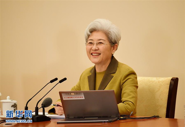 3月4日,十二屆全國人大五次會議在北京人民大會堂舉行新聞發布會。大會發言人傅瑩就大會議程和人大工作相關的問題回答中外記者的提問。新華社記者 燕雁 攝